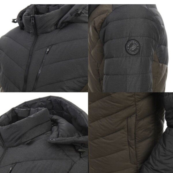 웨스트우드 2018 FW 신상품멜란지소재와 솔리드 소재가 믹스된 상하 블록형 구스경량다운.익스트림한 비대칭 퀼팅의 디자인 등산,낚시,캠핑,일상 모두 착용가능한 멀티다운자켓.비슬론지퍼,가슴 프린트 방수지퍼를 적용하여 기능성과 디자인 포인트를 줌.후드에는 발열충전재를 사용하여 보온성을 향상시킴.