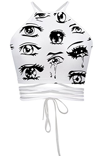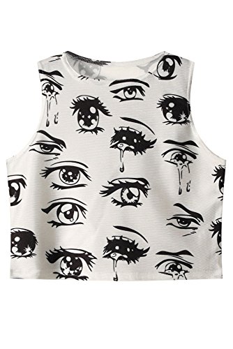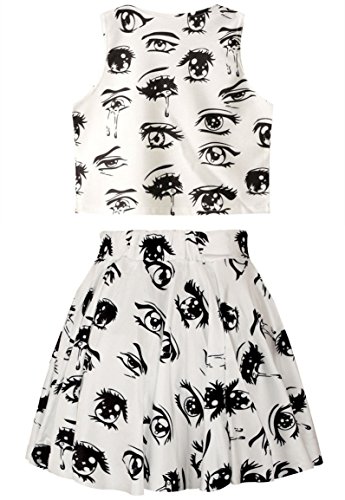-. Title : Cfanny Women's Cartoon Eyes and Tears Pattern Tight Crop Top/Skirt