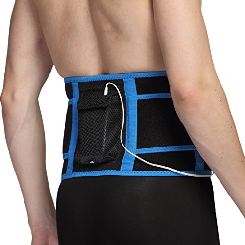 Lumbar Support with Compression Pull Straps & PHONE POCKET - Waist / Lower Back Brace - NEOtech Care ( TM ) Brand - Blue - Size XL