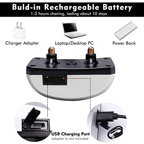 -Lightweight Rechargeable The whole collar weighs only 2.56 oz, cause no pressure on dog's neck. Rechargeble by usb cord. You could charge with you mobile phone adapter or computer usb port. Built-in Li-ion battery only 1 hours charging support 14 days use. So easy!