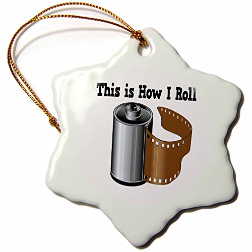 3dRose LLC orn_102566_1 Porcelain Snowflake Ornament, 3-Inch, "This is How I Roll Camera Film for Photographers"