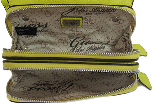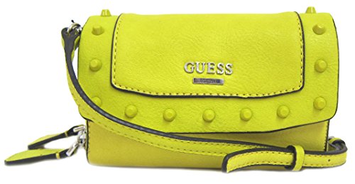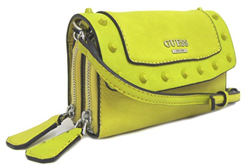 Faux leather with decorative matching studs; Silver-tone hardware; Logo plaque on front Detachable crossbody & hand straps Double interior zipper compartments for extra storage Measurements: L 8" x H 5" x W 2" Brand : GUESS EAN : 0885935806718