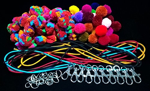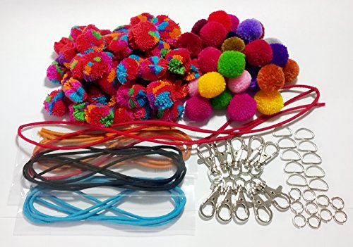 Hmong pom-poms multi color, Pom poms mixed color, Lisu rope, Keychain & ring accessories are perfect for keychain making, clothing, home decorations and other crafty things you can create (FL62)