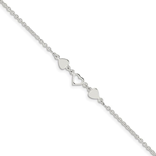 Solid 925 Sterling Silver 9 Heart Link Anklet 9" - with Secure Lobster Lock Clasp (6mm)