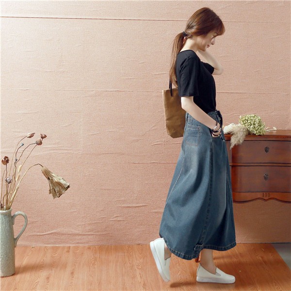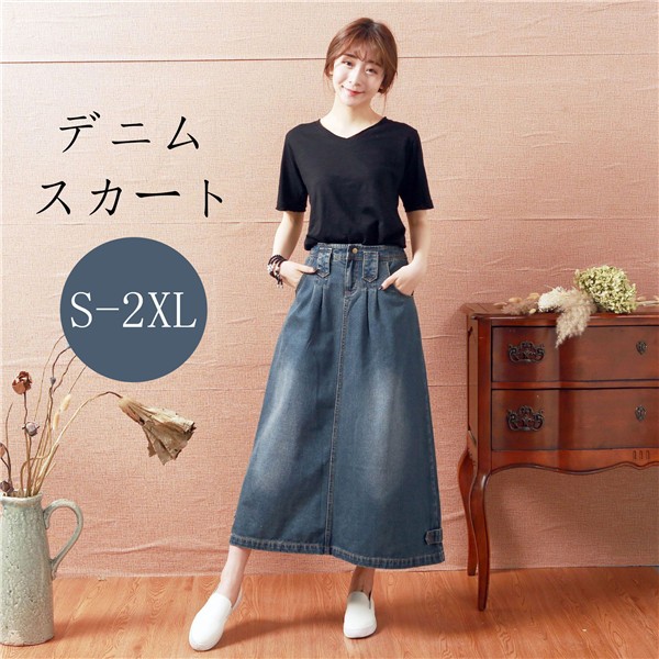 デニムスカート レディーズ ロングスカート デニム ハイウエスト Aライン マキシ丈 ミモレ丈 スカート 春 ゆったり 大きいサイズ カジュアルメイン素材:ポリエステル、コットンカラー:ブルーサイズ:S M L XL 2XL本格デニムのしっかりデニムロングスカート♪どんなトップスとも相性抜群★季節を問わず、流行も問わず,ずっと使い続けられるデニムマキシスカート。ワードローブに持っておきたいド定番の大人カジュアルアイテムです。フロントはボタンとファスナーで開閉し便利です。サイズは、実寸を測っているため多少の誤差はございます。実商品とPC画面では、多少見た目の色に違いがございます。初期不良の場合、未使用の商品のみ到着日から7日以内にご連絡頂ければご返金、交換対応させて頂きます。●商品が到着しましたら、必ず中の商品を確認していただき、商品の到着後、3-4日間以内に必ず弊社までご連絡ください。★いかなる理由であってもご使用後の返品交換は承れません。
