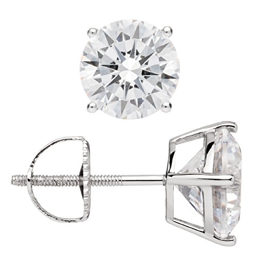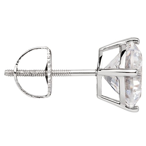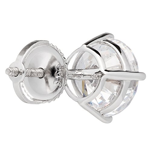A gorgeous pair of stud earrings featuring two brilliant round cut cubic zirconia (CZ) stones totaling 4.0 carats (2.00 carat each earring). Top Quality Grade AAAAA CZs look just like real diamonds that cost thousands of dollars. They are professionally set in a heavy basket setting with secure screw-back fastenings, all crafted from solid 14K white gold, with no other metals mixed (not plated or filled). This beautiful pair of earrings is elegantly presented in a deluxe black velvet box. They will make a perfect gift for a loved one, or for yourself!