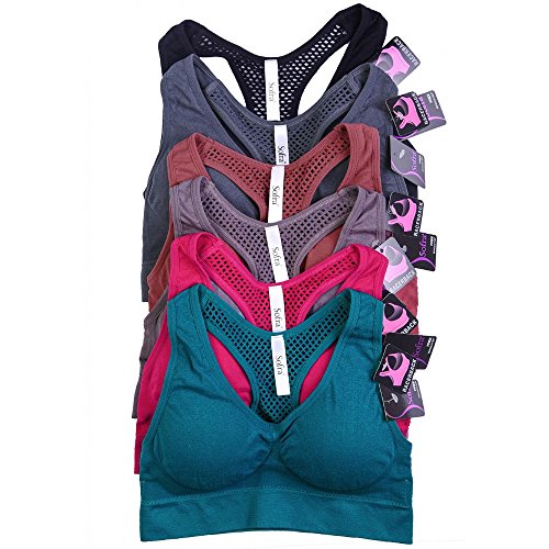 -. Title : Sofra Women's 6 Pack of Seamless Padded Sports Bras