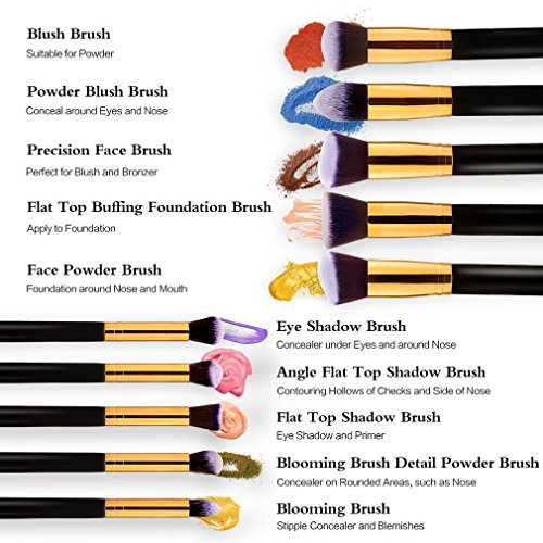 - [Soft Synthetic Fiber Hairs] - The 10 brushes are dense and shaped well. Easy to use, silky to touch, whether you are a beginner, a makeup addict or a professional makeup artist. These professional brushes are a great addition to your collection.