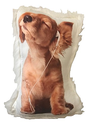 Dog Themed Decorative Accent Pillow with Fur Trim, Ear Buds Puppy, Approx 14" x 8".