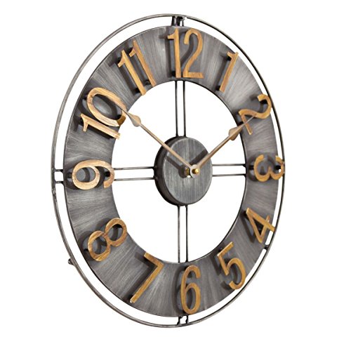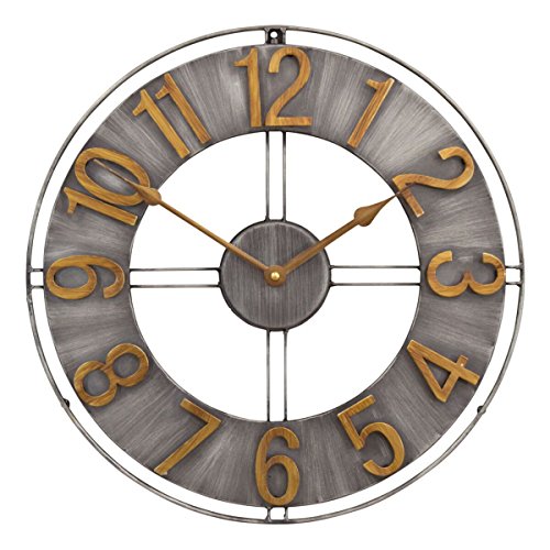 -. Title : Studio Designs Home Industrial Loft 15 Inches Metal Wall Clock, Brushed Steel/Bronze