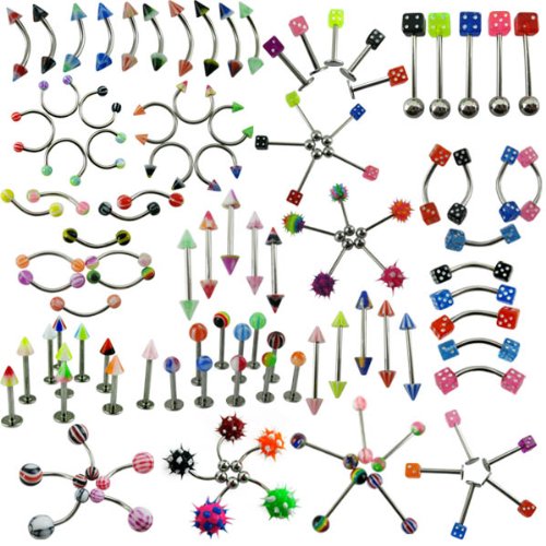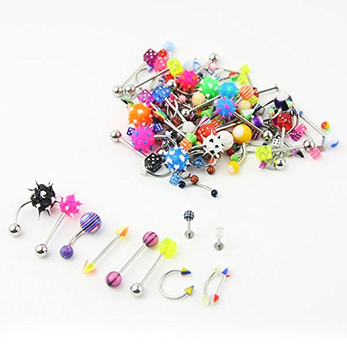 -. Title : SQdeal® New Fashion Lot of 110PCS Body Jewelry Piercing Eyebrow Navel Belly Tongue Lip Bar Ring