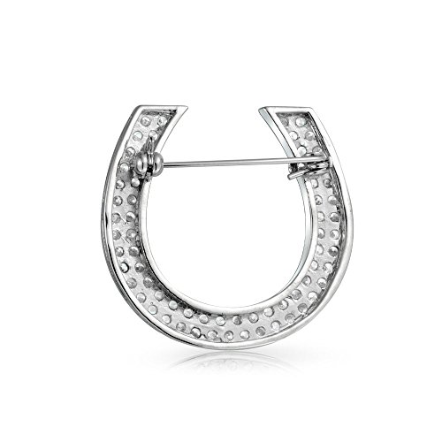 You will never want to take off this gorgeous good luck charm brooch, This equestrian pin is crafted from rhodium plated brass for a brilliant shine that resists tarnishing and will keep you looking fabulous. Encrusted with sparkling pave set clear czs, this lovely horseshoe brooch is the perfect piece of equestrian jewelry. If you love horse jewelry or just need a lucky charm, this equestrian brooch is both classic and dazzling, making it ideal to wear with any outfit. Add this horseshoe brooch to your favorite jacket, or wear it to embellish a gorgeous summer scarf.Feature