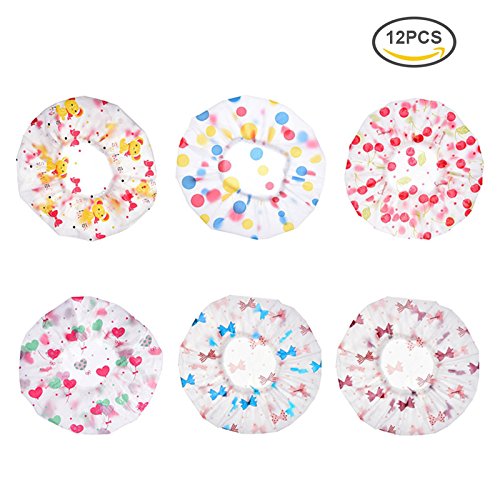 Shower Cap,12 PCS Waterproof Elastic Bath Caps Plastic Bathing Shower Cap Hair Cap