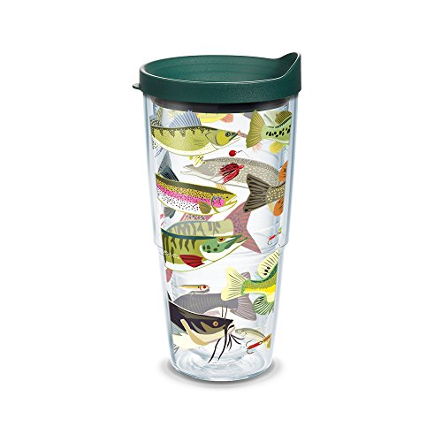 Tervis Freshwater Fish Lure Wrap Clear Inner Tumbler with Hunter Green Lid, 24 oz
