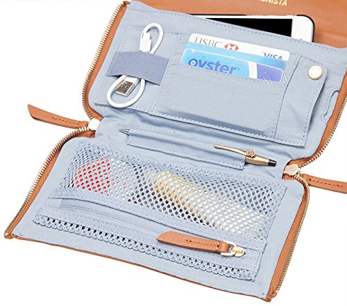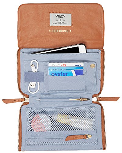 -. Feature : A practical organizer during the day with space for digital devices and cables, it zips to a luxurious clutch with a detachable strap making it perfect for the evening / Contains in-built rechargeable 3000mah battery to recharge your smartphone up to 1.5 times per charge / Features a colorful grosgrain lining and bespoke knomo hardware / Made from lightly tumbled full grain leather that is soft and smooth textured. The leather will age gracefully with use, enhancing the natural characteristics of the material / 1.18x8x5 / Pockets: 3 interior slip, 1 interior zip, 1 exterior, 3 card slots