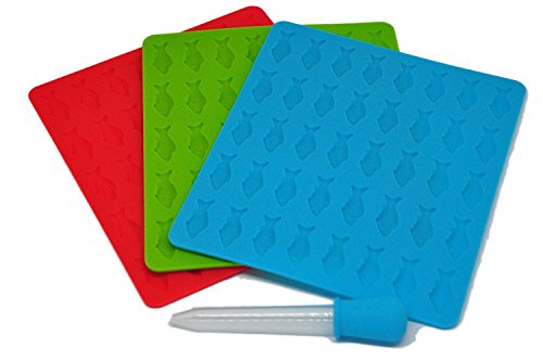 Trusty Goods' ALL-NEW, One-of-a-Kind Gummy Fish Silicone Candy Mold: 3 Pack - 1 Red, 1 Green, and 1 Blue Tray Per Set + 1 FREE Dropper + FREE Recipe PDF