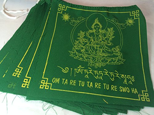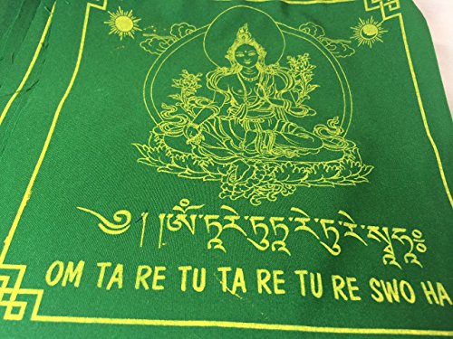 [Product Information]- This listing is for a large solid green color prayer flags with Green Tarai prayers.