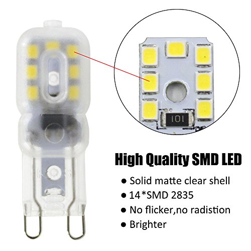 - √● Output Voltage: AC 100-130V, not-dimmable bulb with G9 base, SMD2835 14 LEDs, can reach 220-280 lm