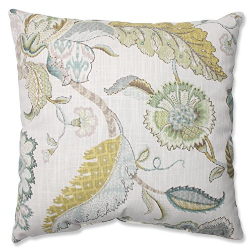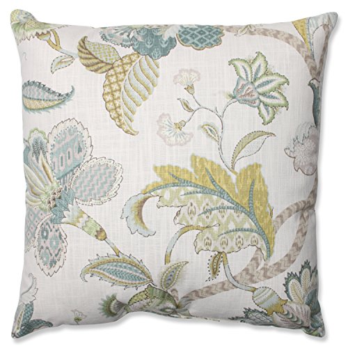 Flora and fauna is in the forefront of this vibrantly patterned throw pillow. Cream, yellow and blue weave together gracefully to create an exquisite flower and feather motif. Give a solid furniture piece a lovely nod to nature with this intricately patterned accent pillow.