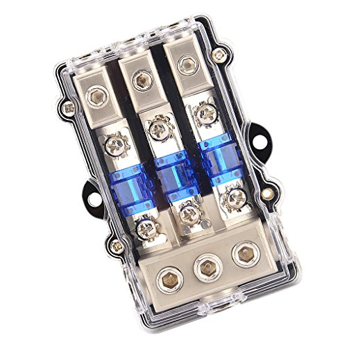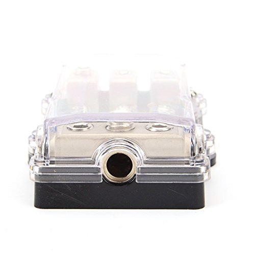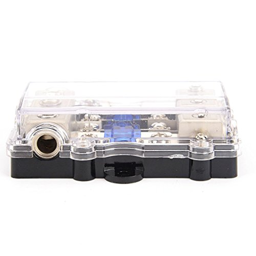 Description: - For protecting your car's audio system. - Cuts off the power automatically when the current is over rated. - Can be used for car auto audio amplifier or other electrical equipment. - Suitable for car, boat or other vehicles use. - Dustproof and waterproof. Specification: - Type: 1 in, 3 out - Gauge:In - 0/4 AWG - Out - 4/8 AWG - with 4/8 AWG wire adapter - Material: ABS Plastic Zinc Alloy - Voltage: 12V-24V - Current Capability: 60A - Using a new buckle design for easy open and close. Package Includes: 1 Piece Fuse Holder 0 |