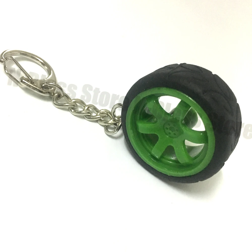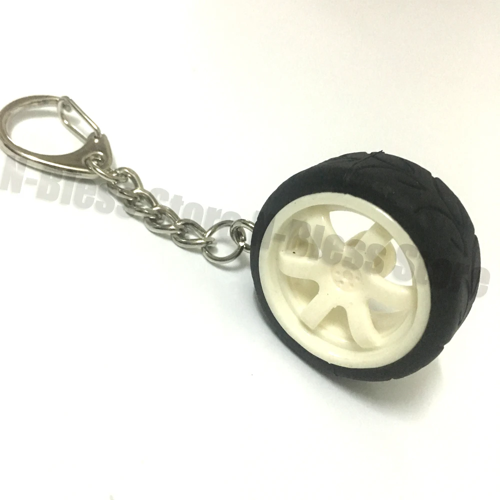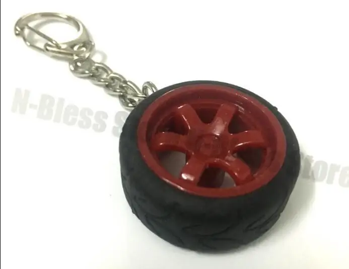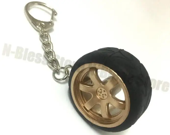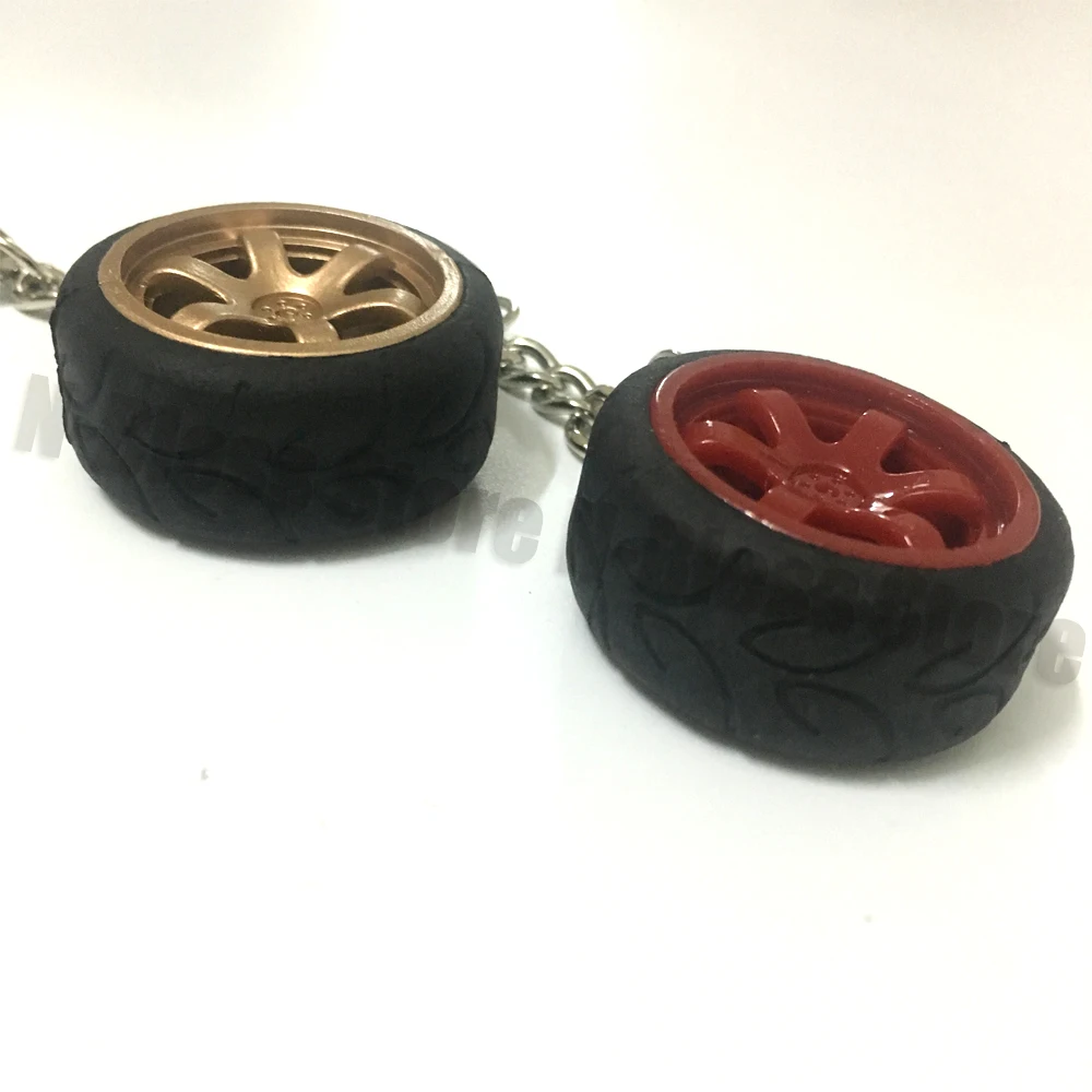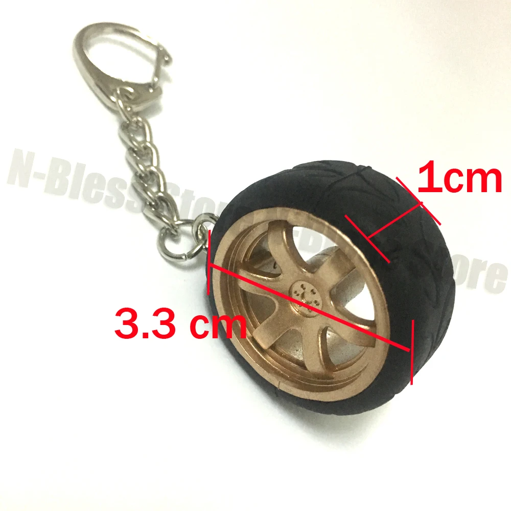 color:golden/black/silver/red/blue/white/green JDM Wheel Rim Keychain