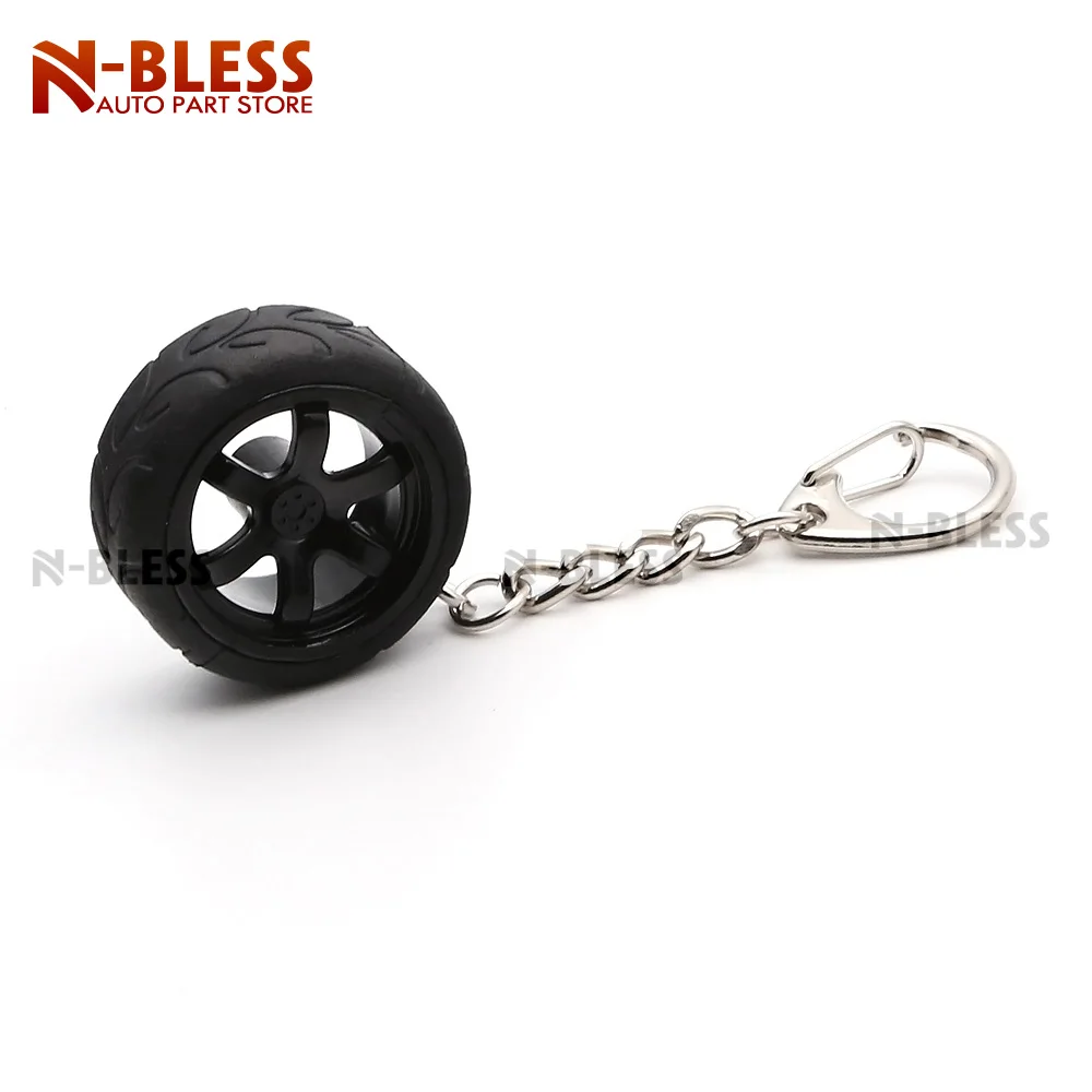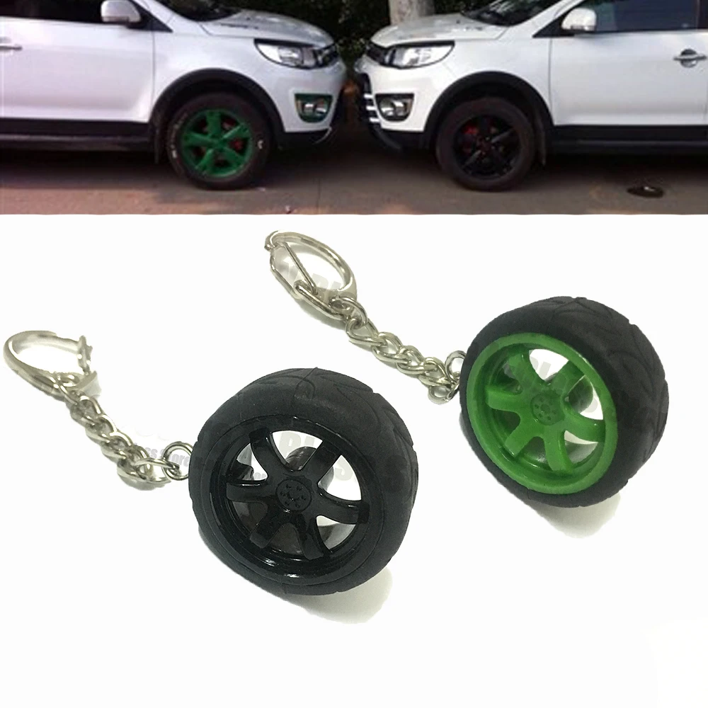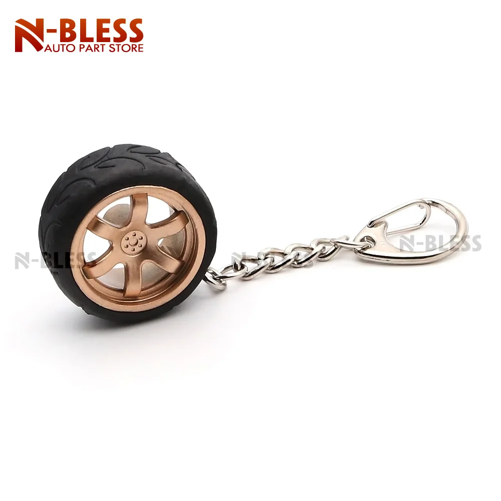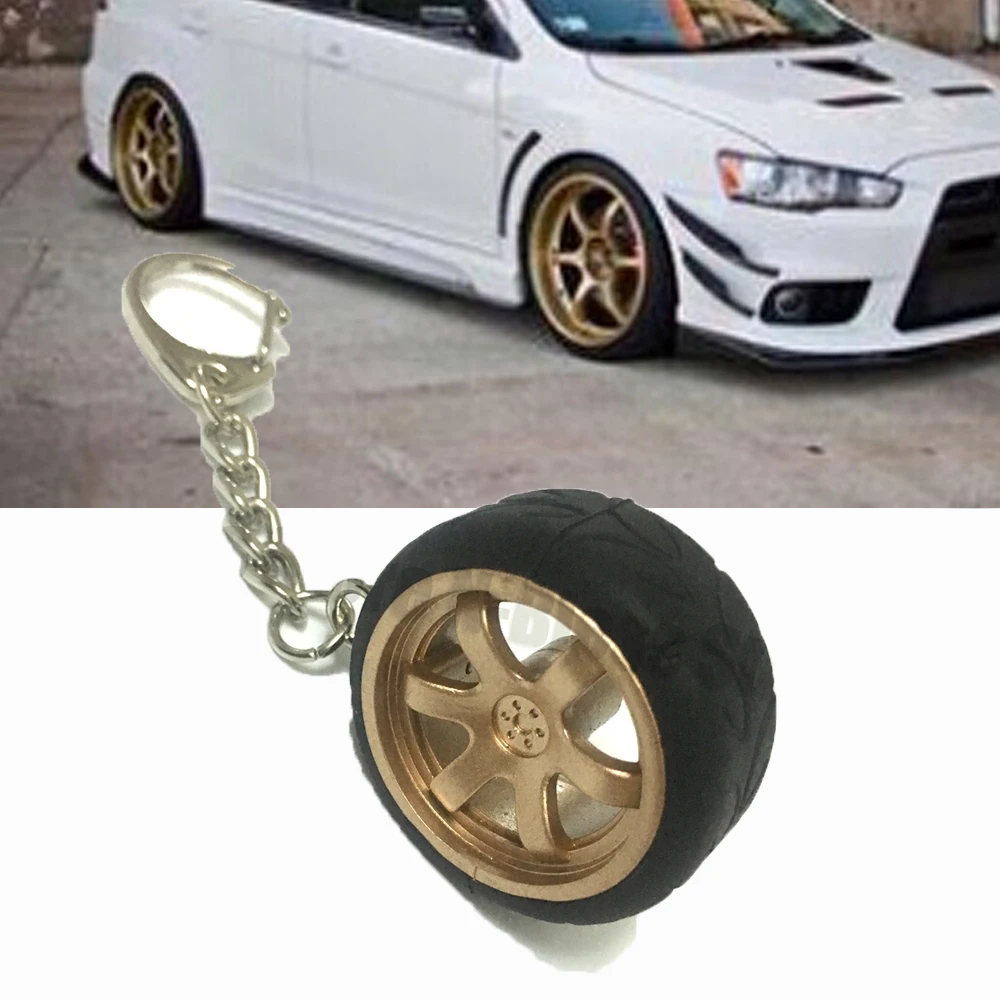 color:golden/black/silver/red/blue/white/green JDM Wheel Rim Keychain