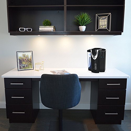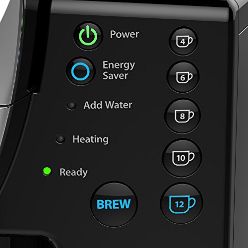 Features 55 ounce water reservoir and a large removable drip tray that accommodates large mugs
