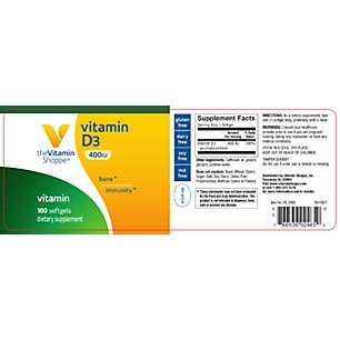 -. Title : the Vitamin Shoppe Vitamin D3 400 IU (100 softgels)