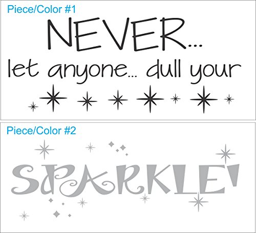 -. Binding : Tools & Home Improvement -. Brand : Wall Decor Plus More -. Color : 23" x 15" -. EAN : 0730792300759 -. Feature : Decal size: 23"wx15"h, when decal is applied as shown / Decal colors: Black & Metallic Silver (sparkle) / Our wall Decals are easily removable; but not reusable / Add a unique and elegant personality to your home decor with wall Decals / Detailed application Instructions included with each wall Decals -. Label : Wall Decor Plus More -. Manufacturer : Wall Decor Plus More -. Model : WDPM3625 -. MPN : 6110936 -. NumberOfItems : 1 -. PackageQuantity : 1 -. PartNumber : 6110936 -. ProductGroup : Home Improvement -. ProductTypeName : BUILDING_MATERIAL -. Publisher : Wall Decor Plus More -. Studio : Wall Decor Plus More -. Title : Wall Decor Plus More WDPM3625 "Never Dull Your Sparkle" Vinyl Wall Decal, 23" x 15", Black & Metallic Silver -. UPC : 730792300759