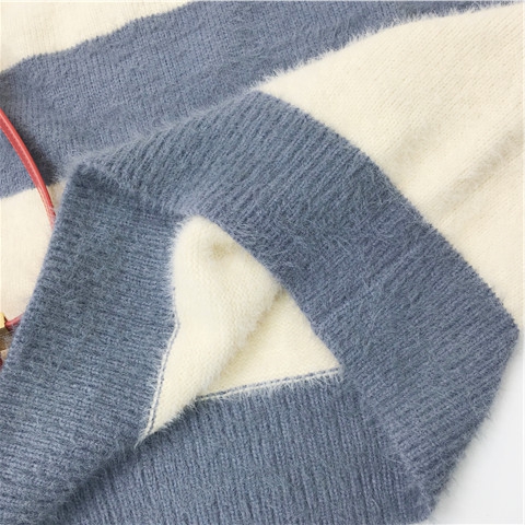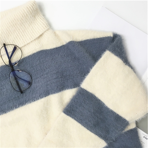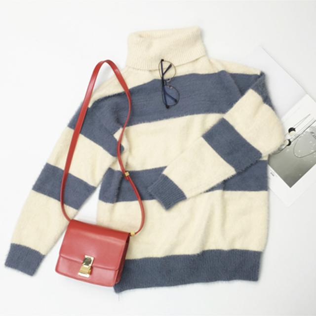 ふわふわな肌触りがポイントのモヘアボーダーハイネックニットです◎