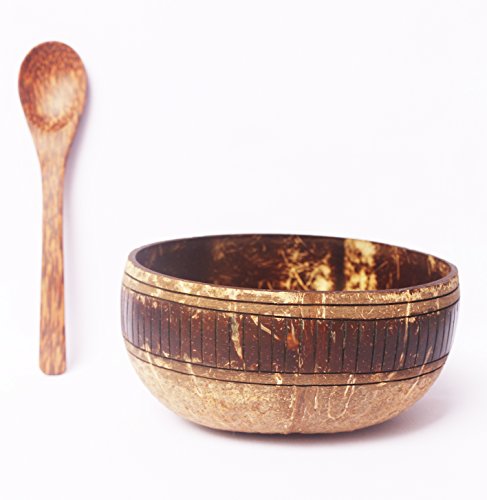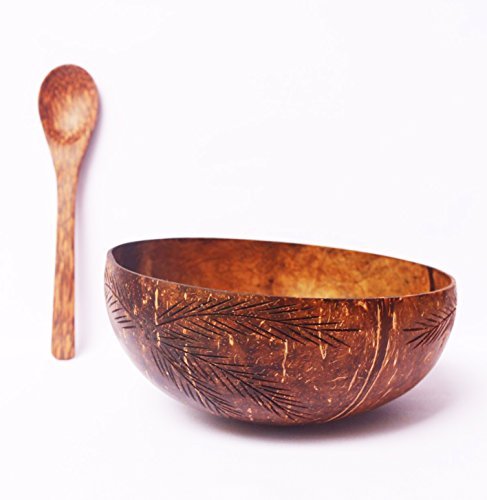 VIBE Natural Coconut Bowl With Spoon Vegan Gift Set - 100% Natural & Eco - Hand Engraved by Fair Trade Artisans I Perfect Smoothie, Breakfast, Buddha Bowls (Mai)
