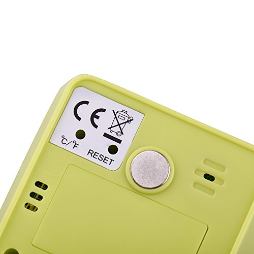 -. Feature : Large LCD display,easy to read.Indoor temperature and indoor humidity display / Temperature unit ℃/℉changeable.Memorized MAX/MIN values of indoor temperature and humidity display in the same time / Display of comfort degree and comfort level icon.Appears indoor Temperature: 18℃~26℃(64℉~79℉)& Indoor Humidity: 40%RH~65%RH,appears other indoor Temperature &Indoor Humidity / Powered by 1.5V button cell(Battery included).With back stand and magnetic stick at back side, convenient to place / Widely used for the measurement of the temperature and humidity in houses, offices, workshops, schools, markets, warehouses, etc