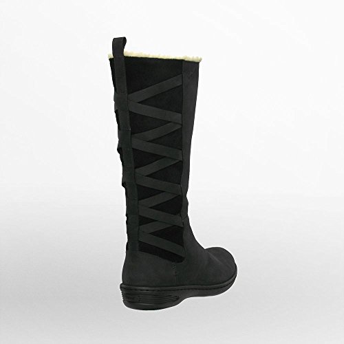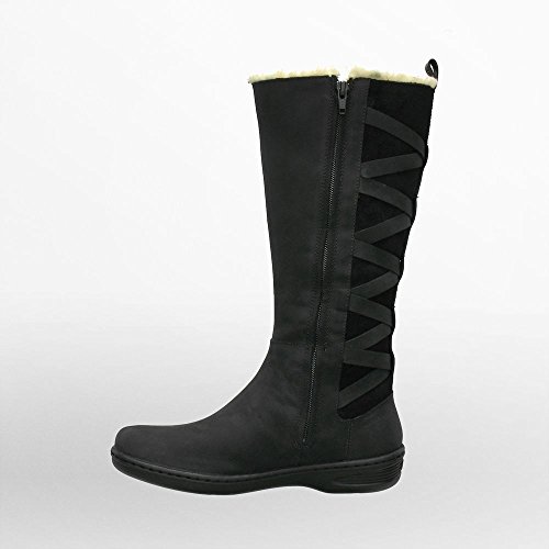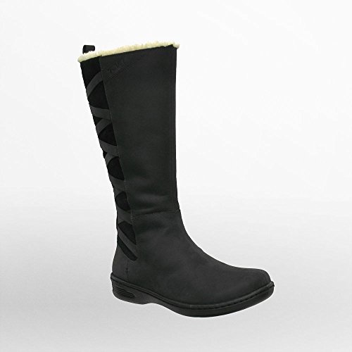 - Feature : Waterproof mid-calf boot featuring sherpa lining and suede back panel crisscrossed by leather straps / Cushioned footbed / Seam-sealed construction / Side zipper