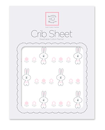 SwaddleDesigns Cotton Crib Sheet, Made in USA, Premium Cotton Flannel, Pastel Pink Garden Bunnie