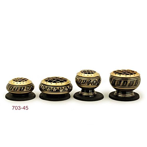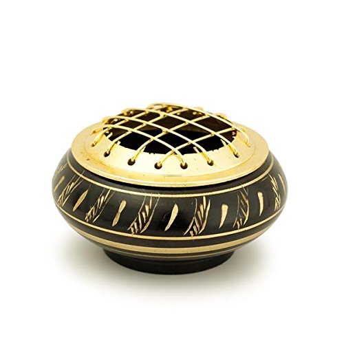 Brass Burner Black bowl feather engraving net top 1.25"Hx2.5"D