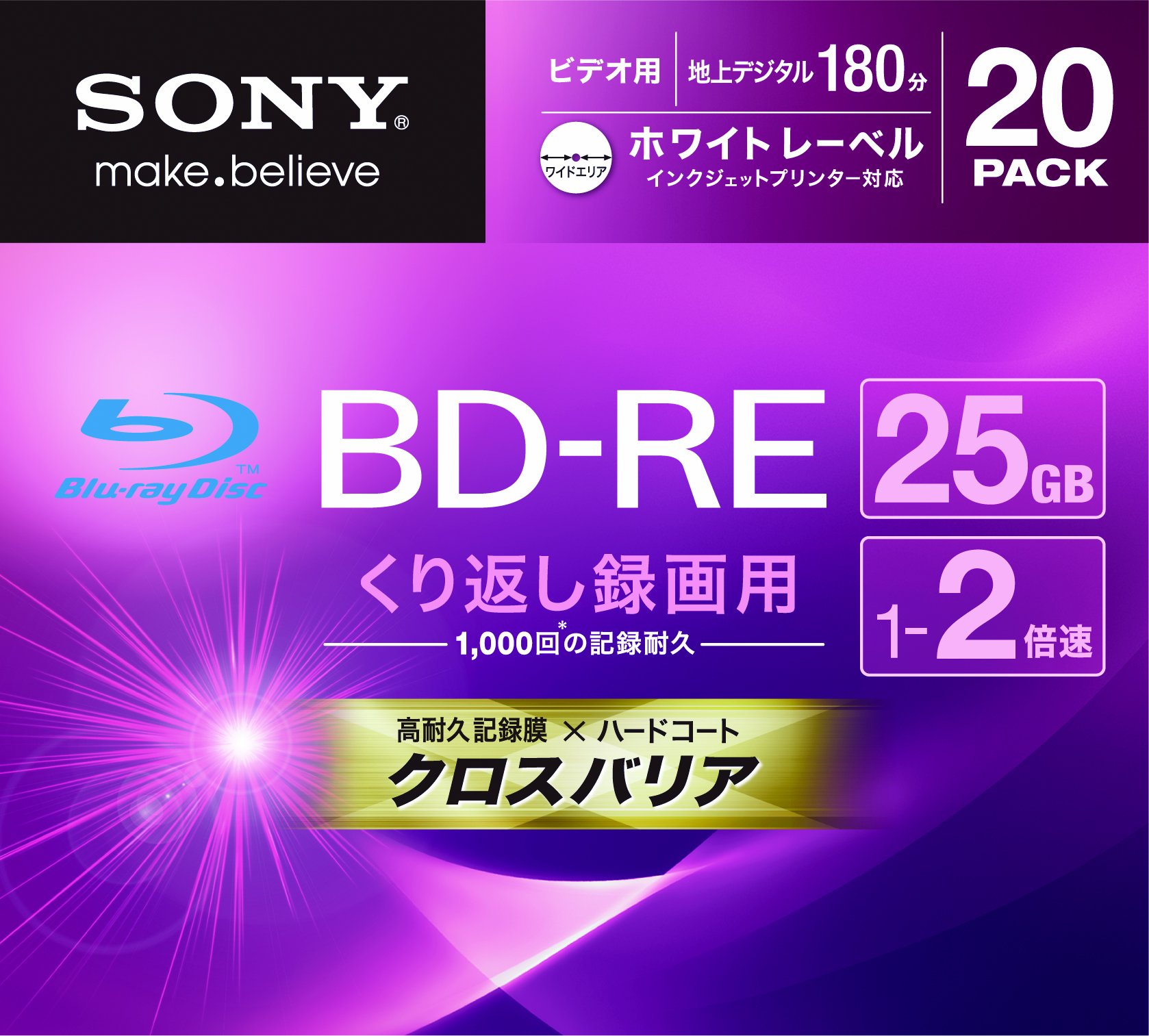 Sony Blu-ray Rewritable Disc | BD-RE 25GB 2x Ink-jet Printable 20 Pack | 20BNE1VGPS2 (Japanese Import)