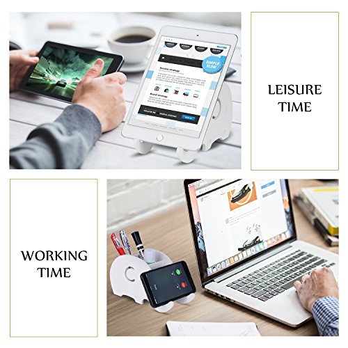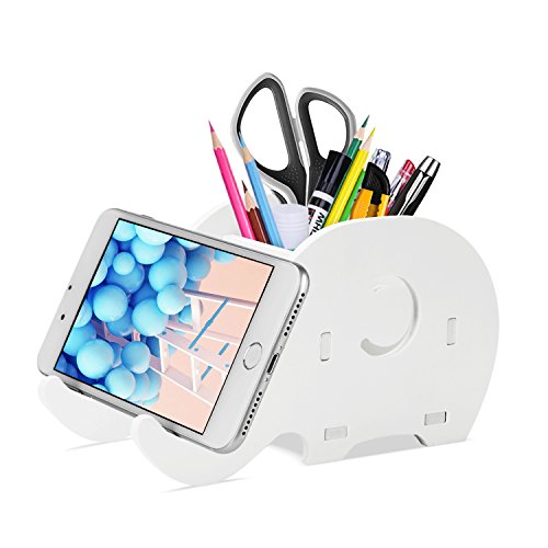 - PERFECT PHONE STAND & PEN CONTAINER: You can use it as a phone stand, tablet stand and pen holder simultaneously. The elephant nose can hold your mobile phone (Horizontal Placement) or tablet, such as iPhone X, 8, 7, 7 Plus, 6s, iPad mini series and kindle, while the body can be used as a pen holder to hold pens, rulers, pencils, scissors and other small stationer