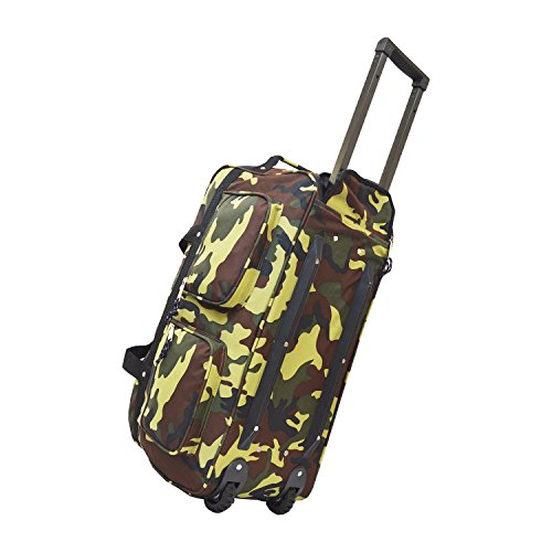 Studio : Luggage USA / DBA Explorer Bag Publisher : Luggage USA / DBA Explorer Bag Binding : Sports Product Description This 22" duffel bag main compartment has D shaped opening with dual zipper for easy access and 2 front zipper pockets for organization. Longer shoulder strap and thick padded handle for easy to carry, two wheels with ball bearing for rugged surface and a strong square pulling handle for easy transport. Great for carry on or overnight stay. 0