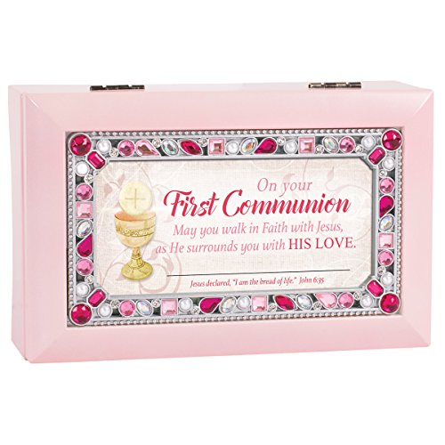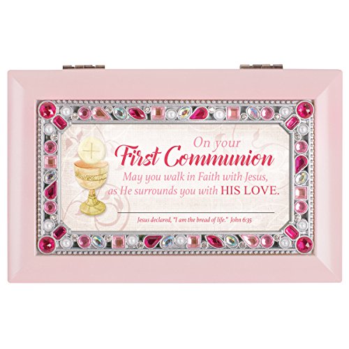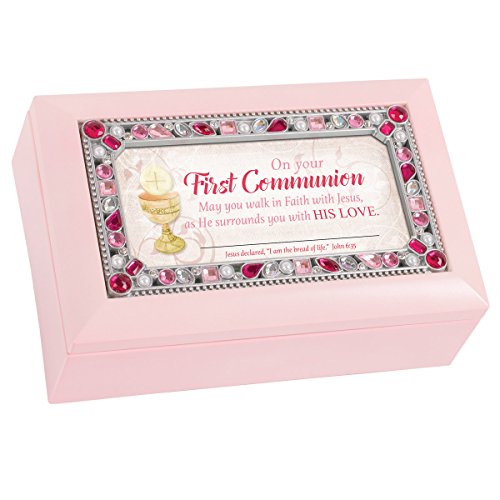 First Communion Personalize Pink Jeweled Petite Music Box Plays Ave Maria