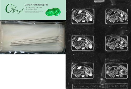 Cybrtrayd Ears Miscellaneous Chocolate Candy Mold with Packaging Bundle of 25 Cello Bags, 25 Silver Twist Ties and Chocolate Molding Instructions