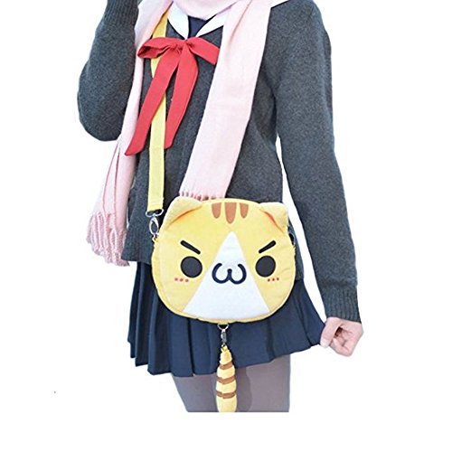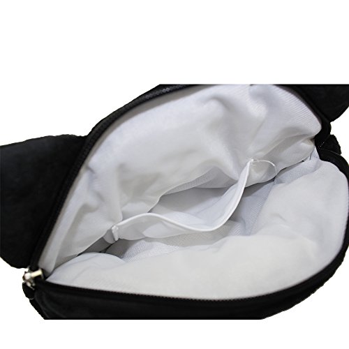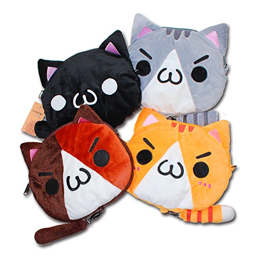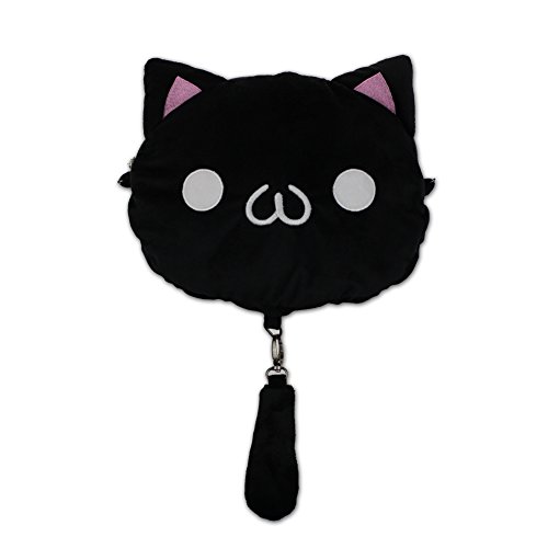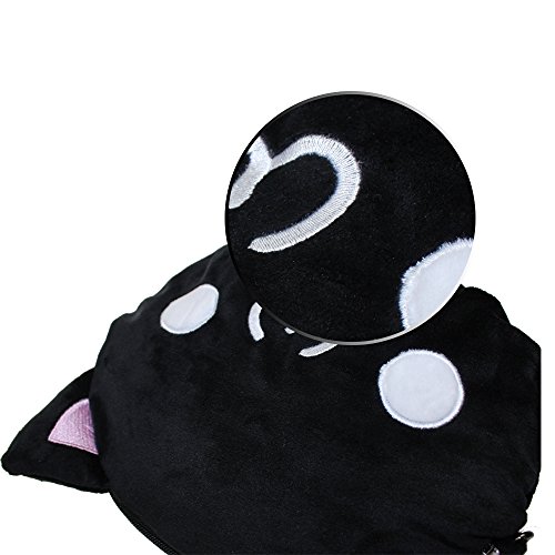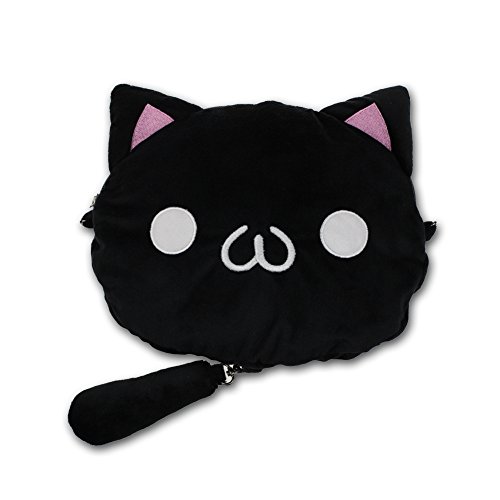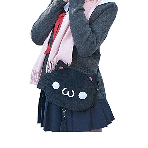 TOMORI® Cute Women Anime Kaomoji-kun Emotiction plush kawaii Cat single Cross Body shoulder bag (Black)
