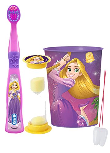 -. Feature : Make Brushing Something Kids Want To Do Verse Have To Do With The Help Of Disney P.R.Incess Rapunzel! Because When Brushing Is Fun, It Gets Done! / (1) Disney P.R.Incess Rapunzel Soft Manual Toothbrush / (1) 2 Minute Dentist Recommended Rapunzel Themed Brushing Timer! (Assorted Styles) / (1) Tangled 16oz Plastic Mouthwash Rinse Cup...Doubles As Toothbrush Holder! / Plus Bonus "Remember to Brush" Visual Aid Tooth Saver Necklace. Hang it in their bathroom or by their bed so they remember to keep their chompers sparkly fresh. You could also use these tooth charms to save one of your child's baby teeth.