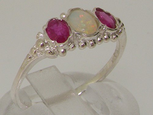 -. Feature : Made in England / Natural Opal & Ruby / Real Solid Sterling Silver / Sizes 4 to 12 Available including quarter and half sizes / Supplied in a FREE Luxury Ring Box