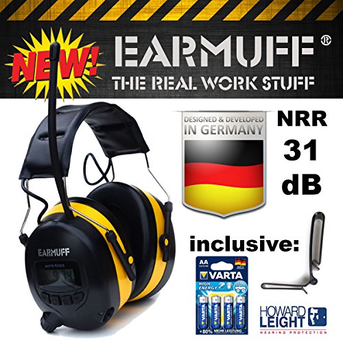 -. Feature : See many 5* reviews of this item in Europe at AMAZON in UK & GERMANY, check out!!! / Seek and Scan Functions AM/FM MP3 Cord Included, Easy Fingertip Controls 8 Radio Station Presets + Clock function at standby / Comfortable foam cushions for all day wearing, Volume limited to safe levels (82dB) / Use in the workshop, in the yard, or on the job, Long-lasting battery power over 200h / 2 Years full warranty, developed and designed in Germany, 4x AA battery (VARTA made in Germany) included