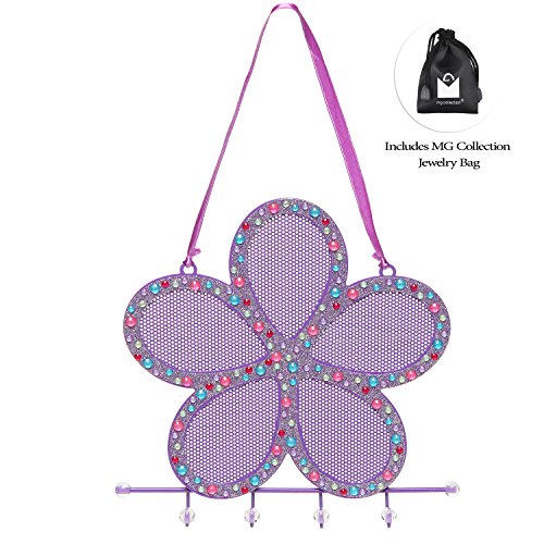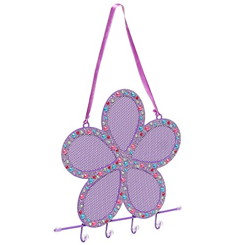 Studio : MyGift Publisher : MyGift Binding : Kitchen Product Description Bring stylish jewelry storage and a dash of sparkle to your daughter's room - or your own room! - with this charming earring hanger. The sweet, sparkly, and eye-catching design is sure to bring a smile to your face, and the purple ribbon at the top allows you to hang and display this earring rack on any wall. Just fit your favorite earrings through the holes in the wire mesh and hang your collection of necklaces and bracelets from the 4 ball-capped metal hooks below to keep your jewelry collection well-organized and beautifully displayed. *Due to monitor variations colors may appear slightly different.* **Official MyGift® product. Jewelry not included.** Approximate Dimensions: 8.25" W X 8" H X 0.75" D. 0 |