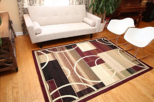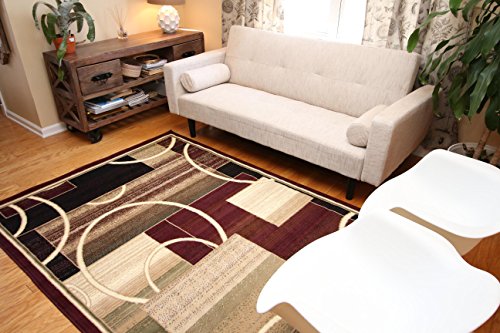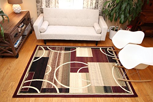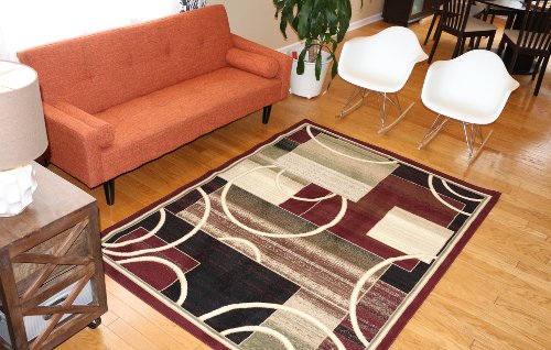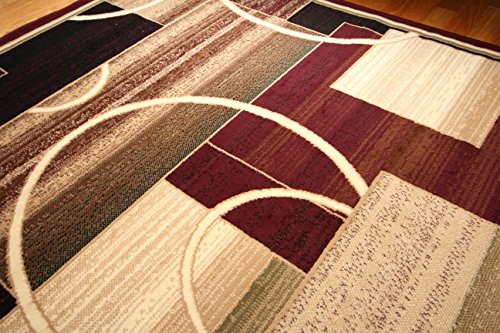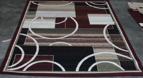 (Generations)/Furniture Decor/Home Decor/DIRECT FROM USA/Generations Brand New Contemporary Reds Burgundy Modern Square and Circles Area Rug 7'10 x 10'5