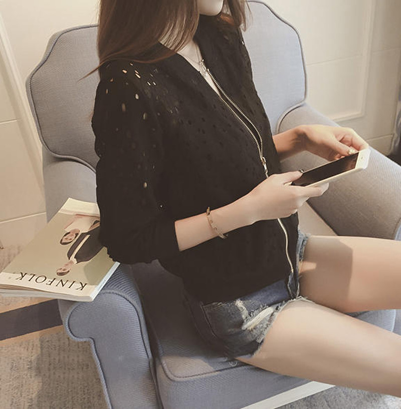 ♢ポイント♢ レースデザインが上品なジャケットです。 肌寒い時に羽織ると◎