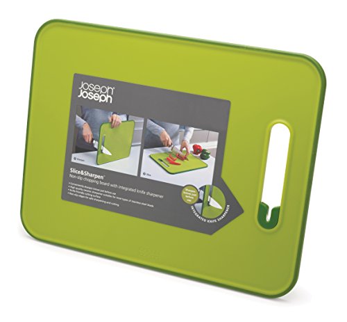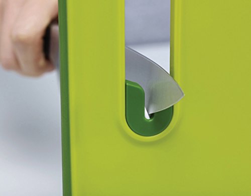 Joseph Joseph Chopping Board with Integrated Knife Sharpener, Large, Slice and Sharpen, Green