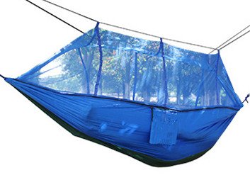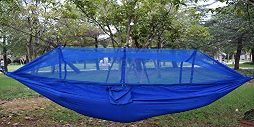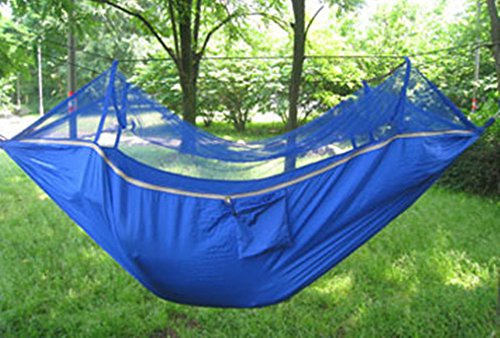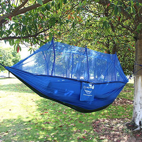 SHS Mosquito Net Hammock - Extra Strong Ripstop Nylon Camping Hammock - Reversible, Compact, Lightweight & Portable with Bug Free Netting - Great for Travel, Beach or Yard ( BLUE)