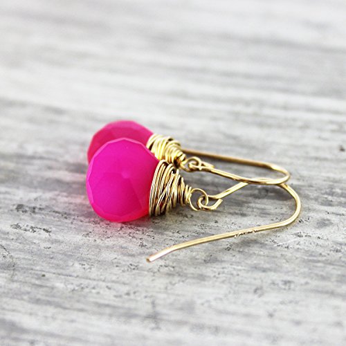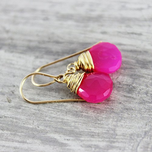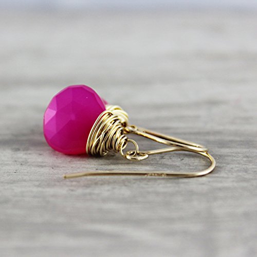 -. Title : Hot Pink Chalcedony 14kt Gold Fill Earrings
